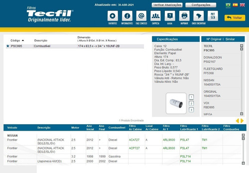 Seja o primeiro a avaliar “Filtro Combustivel Primario Frontier 2.5 2010 2011”